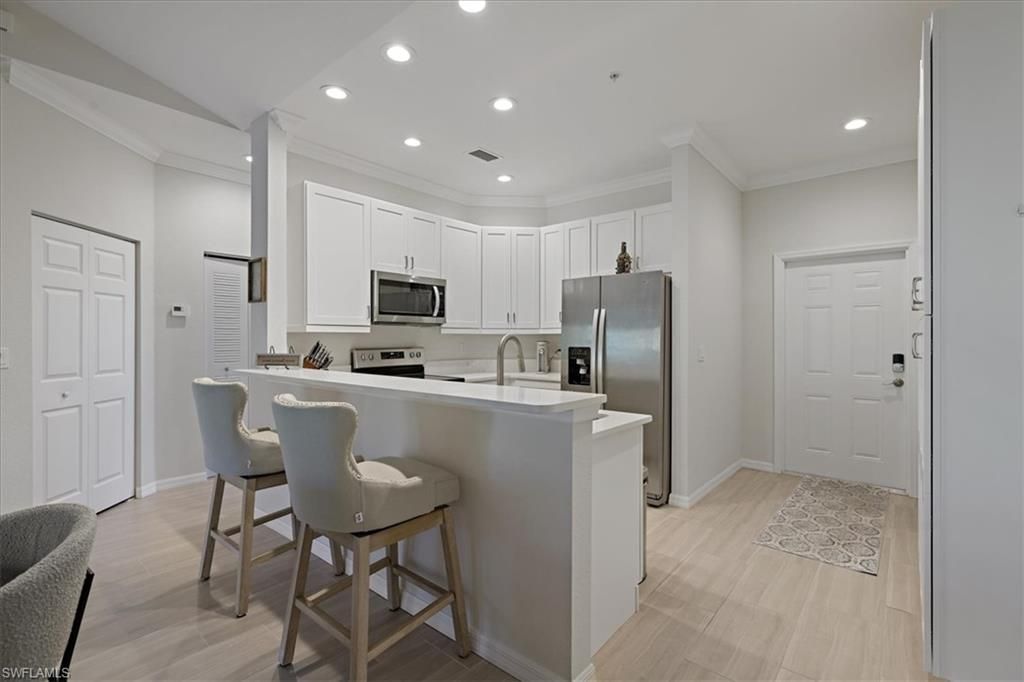 Like-New 3 Bedroom Condo with Garage in Gated Community - No Flood Zone!Discover modern Florida living in this like-new 3 bedroom, 2 bathroom condo located in a desirable gated community filled with resort-style amenities. This beautifully maintained second-floor unit includes a private garage and a screened lanai, offering comfort, style, and peace of mind, all in a no flood zone. Inside, you'll find tile flooring throughout, LED lighting, and elegant crown molding that enhance the home's brigh...Like-New 3 Bedroom Condo with Garage in Gated Community - No Flood Zone!Discover modern Florida living in this like-new 3 bedroom, 2 bathroom condo located in a desirable gated community filled with resort-style amenities. This beautifully maintained second-floor unit includes a private garage and a screened lanai, offering comfort, style, and peace of mind, all in a no flood zone. Inside, you'll find tile flooring throughout, LED lighting, and elegant crown molding that enhance the home's bright, open layout. The kitchen features white shaker-style cabinets, quartz countertops, and stainless steel appliances, perfect for cooking, entertaining, and everyday living. Both bathrooms offer matching modern cabinetry and quartz surfaces for a cohesive, high-end look. Enjoy the privacy and security of a gated, amenity-rich community, complete with a clubhouse, fitness center, pool, and more. Conveniently located near shopping, dining, and top local attractions, this condo combines luxury and location in one incredible package. Whether you're looking for a primary residence, seasonal getaway, or investment property, this move-in ready condo has it all. Schedule your private showing today and experience the best of Florida condo living!