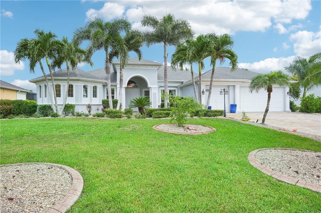 Golf, Lakefront & Resort-Style Living in Cape RoyalWelcome to Cape Royal, a premier gated golf community where luxury living meets an active, resort-inspired lifestyle. With 27 holes of championship golf, tennis and pickleball courts, scenic biking paths, and easy access to world-class fishing, every day here feels thoughtfully curated for enjoyment and ease.This immaculate Western-exposure residence in Royal Tee Golf & Country Club is perfectly positioned to capture sweeping golf course and tra...Golf, Lakefront & Resort-Style Living in Cape RoyalWelcome to Cape Royal, a premier gated golf community where luxury living meets an active, resort-inspired lifestyle. With 27 holes of championship golf, tennis and pickleball courts, scenic biking paths, and easy access to world-class fishing, every day here feels thoughtfully curated for enjoyment and ease.This immaculate Western-exposure residence in Royal Tee Golf & Country Club is perfectly positioned to capture sweeping golf course and tranquil lake views, offering 2,568 sq. ft. under air (4,772 sq. ft. total) in a highly desirable 3-bedroom + den, 3-bath layout.Designed for both everyday comfort and elevated entertaining, the home has been extensively updated and impeccably maintained, including:New roof (2023)Fully refinished saltwater pool & spa (2024) with all new 2024-2025 equipmentNew screen cage (2023)Travertine pool deck & paver drivewayLush tropical landscaping featuring mango, banana, Barbados cherry, and a rare Lemon Lime Cocktail Tree (Meyer lemon & Key lime)Inside, the gourmet kitchen anchors the home with granite countertops, stainless steel appliances, crown molding, tray ceilings, and rich wood flooring in the bedrooms. The open-concept design flows effortlessly to the covered lanai and resort-style pool, creating the perfect backdrop for lakeside relaxation, sunset gatherings, and indoor-outdoor living.The primary suite is a private retreat with direct pool access, dual vanities, a soaking tub, and a walk-in shower. Split guest bedrooms ensure privacy, while the den offers a flexible space ideal for a home office, media room, or quiet reading nook.Set along the quiet Queen 2 par-5 fairway, away from tee boxes and greens, and thoughtfully positioned well back from Veterans Blvd-this home delivers a rare balance of peace, privacy, and picturesque views.This is more than a home, it's a lifestyle investment in one of Cape Royal's most sought-after settings, where golf, nature, and luxury converge seamlessly.