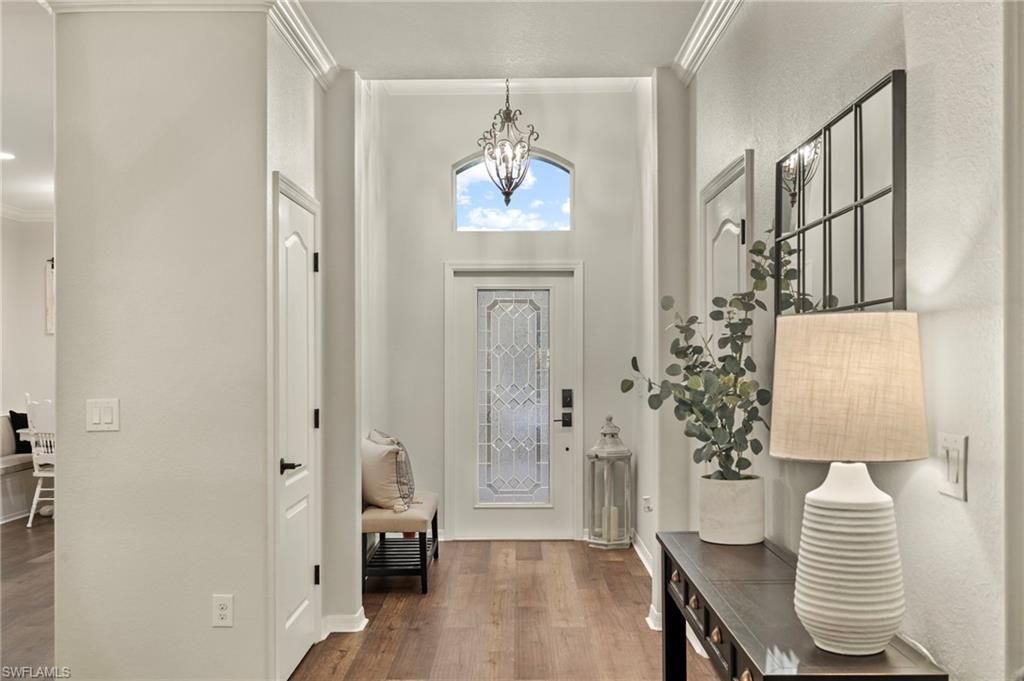 Look no further! This dream property, in the heart of Estero, boasts 3 bedrooms and 2 baths situated on a peaceful culdesac with stunning lake views. The Florida Mediterranean exterior showcases arches, stone masonry accents, a wrought iron screened entry and a tile roof that invites you in. As you enter into the home, you pass through an upgraded decorative glass front door that leads to an open foyer with impressive ceilings and crown molding throughout. The beautifully finished kitchen, equip...Look no further! This dream property, in the heart of Estero, boasts 3 bedrooms and 2 baths situated on a peaceful culdesac with stunning lake views. The Florida Mediterranean exterior showcases arches, stone masonry accents, a wrought iron screened entry and a tile roof that invites you in. As you enter into the home, you pass through an upgraded decorative glass front door that leads to an open foyer with impressive ceilings and crown molding throughout. The beautifully finished kitchen, equipped with NEW appliances, has an open concept feel that looks out onto the formal dining room. The kitchen offers ample cabinets and counter space, giving the culinary enthusiast plenty of room for storage and cooking! The kitchen feels like a day out at the caf? with the built in booth, quartz countertops, decorative backsplash and great natural lighting. This house has the perfect sized living room with ample seating space and decorative beams to give the home an elevated look. The gathering room looks out onto the gorgeous lake view and large covered lanai. Stepping outside you will find an extended screened in patio with to enjoy all of the wildlife views while you soak up the fresh air in the included above ground spa! The owner's suite shares these incredible views along with an impressive primary bathroom. The bathroom offers a garden tub and a glass enclosed tile shower with a double bowl vanity. The two secondary bedrooms offer flex space for family, guests, office needs and more. The garage has a newly epoxied floor, hanging ceiling racks, a second refrigerator, and a portable generator. If you are looking for a beautifully finished home with newer Samsung appliances/TV's throughout, freshly painted, move in ready with plantation shutters, aesthetic improvements, gorgeous views and space for recreation -look no further! Do not miss your opportunity to own this gorgeous home in a prime location. Bella Terra is a one of a kind community located just a few miles east of I-75 in Estero, off of Corkscrew Road. Bella Terra has lower HOA costs compared to other communities nearby while providing landscape maintenance, cable, internet, 24-hr gate guard, and more. This community is the perfect blend between amenities and nature with breath taking views of the 100 acres of beautiful lakes and the surrounding 400 acres of conservation preserves. Bella Terra amenities include a 7,000 sq. ft. Club House, with a fitness center, a resort style pool with a spa and waterfall, pickleball, tennis, bocce, & basketball courts, multi-use ball fields, an inline skate park, beach volley ball, butterfly garden, and playground.