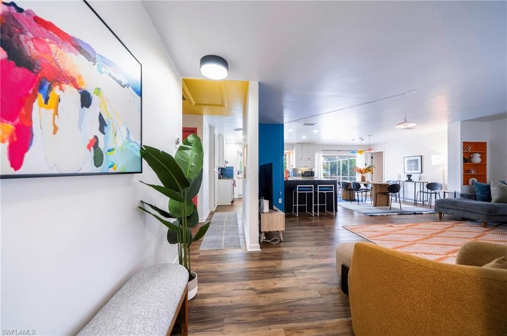 Mid-century modern meets contemporary coastal at this gulf access pool home with 7,000 lb boat lift and dock. This home is sold fully furnished and is an Airbnb Guest favorite with a whopping 4.94 Star Rating and over 66 reviews. Amy from Traverse City MI says: "Our family of four loved this place. It’s bright and colorful, and very spacious and comfortable. We felt both right at home and on vacation at the same time. The pool in the back was fun, and watching boats go by ...Mid-century modern meets contemporary coastal at this gulf access pool home with 7,000 lb boat lift and dock. This home is sold fully furnished and is an Airbnb Guest favorite with a whopping 4.94 Star Rating and over 66 reviews. Amy from Traverse City MI says: "Our family of four loved this place. It’s bright and colorful, and very spacious and comfortable. We felt both right at home and on vacation at the same time. The pool in the back was fun, and watching boats go by on the canal was also entertaining. We also enjoyed walks in the neighborhoods, and saw several little burrowing owls hanging out on mailboxes at night!" Cory from Las Vegas, NV says" This was our second time staying in this house located at Cape Coral. Plenty of places near by to eat and shop. The house and pool are always very clean and the area is peaceful and quiet. Amgad is always responsive to any questions, answering within seconds. Will definitely be back for a 3rd stay!" These are just a few of the raving reviews. Jump right into Airbnb hosting or make this your next home. The home features a desirable split floorplan which offers privacy for your guest and family. Primary suite includes dual closets with a large updated ensuite primary bath, a tranquil retreat - featuring both a large walk-in shower and deep luxurious soaking tub. This home was truly designed with you in mind. Everything from the colorful joyful colors in the bedrooms to the tranquil modern dinning room. Comfy sofa and multiple lounge areas. Kitchen has stainless steel appliances, wooden cabinetry & granite counter tops. Guest bath was also stylishly renovated within the last 3 years. Rounding out this home is 2 car garage and includes washer and dryer. Outdoors, enjoy the expansive screened lanai overlooking the solar-heated pool and serene canal that goes out to the gulf with only one bridge along the way. The City of Cape Coral with its many canals, parks & great restaurants, is rapidly growing, offering new opportunities and developments, making it a top place to live, work, and visit in Florida.