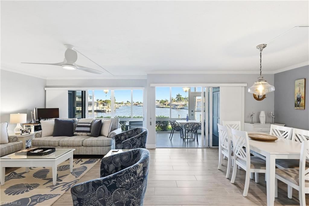 Enjoy effortless waterfront living in this beautifully updated and MOVE-IN-READY, FIRST-FLOOR 2-bedroom, 2-bath condo located in Southeast Cape Coral's most desirable Beach Parkway area. The VIEWS from this home are unbelievable This renovated end unit offers panoramic views of a 200-ft-wide canal with DIRECT SAILBOAT ACCESS and NO BRIDGES, just moments to the Caloosahatchee River. Dock your boat right behind your unit accommodating up to a 30-ft. boat, making this a true boater's dream. Inside,...Enjoy effortless waterfront living in this beautifully updated and MOVE-IN-READY, FIRST-FLOOR 2-bedroom, 2-bath condo located in Southeast Cape Coral's most desirable Beach Parkway area. The VIEWS from this home are unbelievable This renovated end unit offers panoramic views of a 200-ft-wide canal with DIRECT SAILBOAT ACCESS and NO BRIDGES, just moments to the Caloosahatchee River. Dock your boat right behind your unit accommodating up to a 30-ft. boat, making this a true boater's dream. Inside, the light-filled open floor plan features two triple sliding glass doors that showcase stunning water views and seamlessly blend indoor and outdoor living. The home has been tastefully updated throughout, featuring a beautifully renovated kitchen with quartz countertops, custom cabinetry, and updated appliances. Both bathrooms have been upgraded with quality finishes, Relax and entertain in the enclosed and screened lanai, perfect for enjoying year-round waterfront living. NO FLOODING, Impact-resistant windows and sliding doors provide peace of mind, while recent community improvements include new standing seam metal roofs, soffits, carport roofs, and gutters. Additional features include a community pool and a 5x8 private storage unit located at the carport. This is a beauty!!