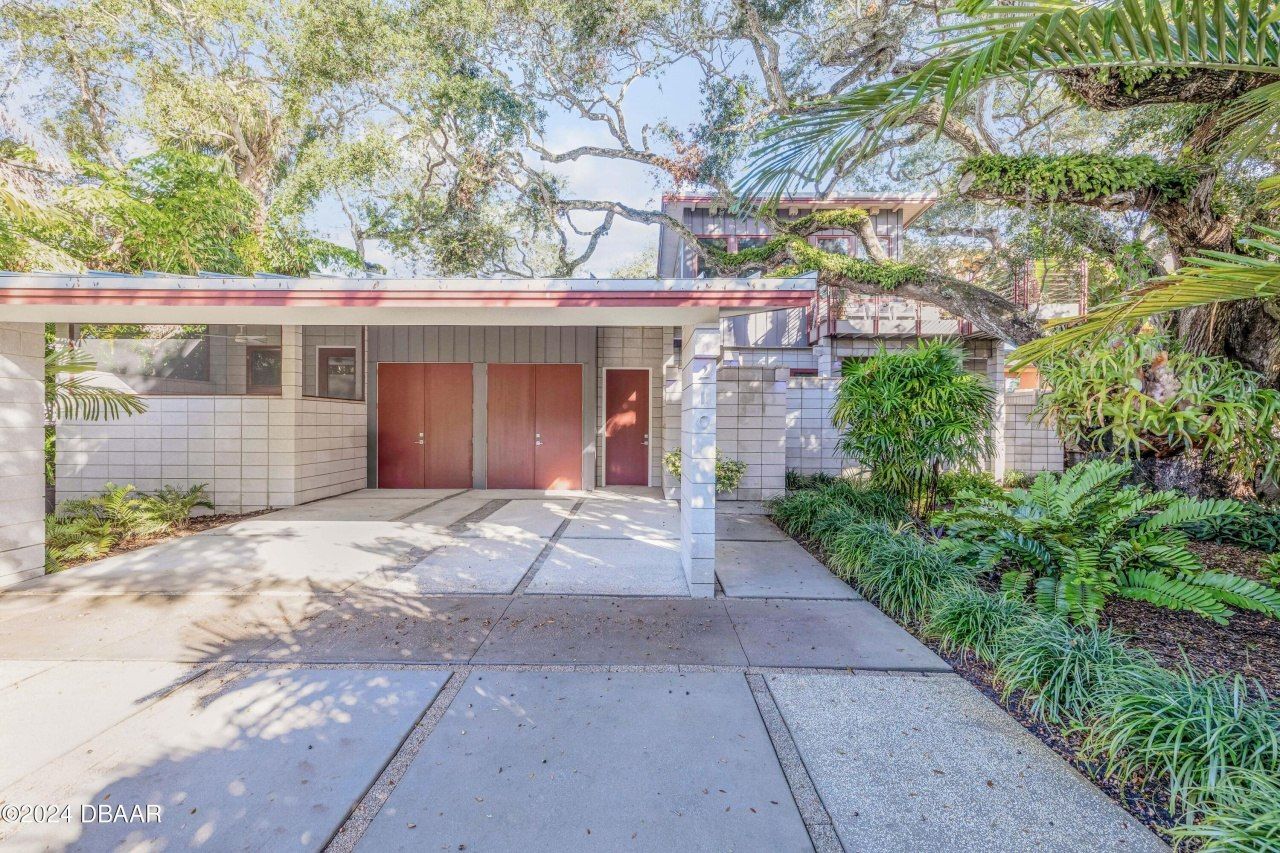 Experience the perfect blend of timeless design and modern luxury in this stunning 3-bedroom, 3-bathroom mid-century modern home. Elevated and thoughtfully designed, this home features an open floor plan with a light and airy ambiance, thanks to an abundance of natural light streaming through PGT insulated windows. The seamless flow of the living area into the kitchen makes entertaining effortless. The kitchen is a chef's dream, boasting solid surface countertops, stainless steel gas appliances,...Experience the perfect blend of timeless design and modern luxury in this stunning 3-bedroom, 3-bathroom mid-century modern home. Elevated and thoughtfully designed, this home features an open floor plan with a light and airy ambiance, thanks to an abundance of natural light streaming through PGT insulated windows. The seamless flow of the living area into the kitchen makes entertaining effortless. The kitchen is a chef's dream, boasting solid surface countertops, stainless steel gas appliances, a wet bar with a wine fridge, and sleek finishes. Each bedroom is generously sized, with the master suite offering two walk-in closets complete with customized shelving and a private enclosed lanai - an ideal spot to enjoy your morning coffee. All three bathrooms are elegantly appointed with solid surface countertops, tile-surround enclosed showers, and cypress ceilings, delivering both style and function. The upper floor elevates the home's appeal with an open-air loft that can serve as a library, office, or creative space. Featuring custom shelving, a lap pine ceiling continues in this area, and it has direct access to an expansive open-air deck. This area is perfect for entertaining or unwinding under the stars. Surrounding the home is lush tropical landscaping with multiple rare palms and other plants, all thoughtfully designed specifically for this property, creating a serene and picturesque outdoor oasis. Built to last, this block construction home is reinforced with rebar and features polished concrete floors with aluminum expansion joints, a durable metal roof, and thoughtfully placed floor outlets. The outdoor grilling area adds to the home's entertainment possibilities. The furniture is negotiable, offering the opportunity for a turnkey experience. Modern, functional, and stylish, this home is a rare find - schedule your private showing today!