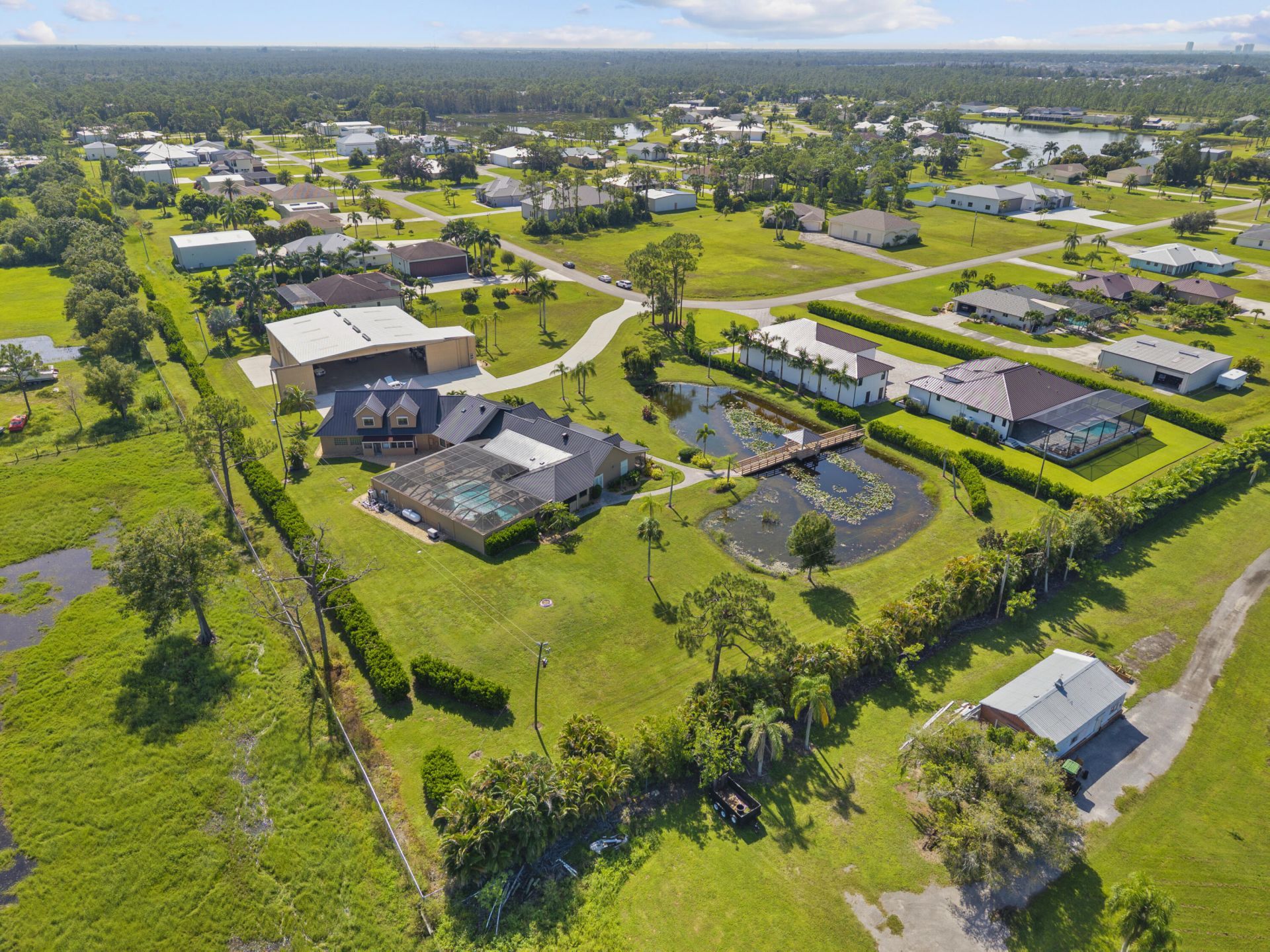 Nestled in the prestigious Pine Shadows Airpark, 3561 Downwind Lane offers an unparalleled blend of luxury living and aviation convenience. This meticulously maintained property, complete with a private hangar, modern upgrades, and resort-style amenities, is a dream for aviation enthusiasts and those seeking a high-end lifestyle in Southwest Florida. Below is a detailed overview of the property's standout features.Key FeaturesPrivate 80x80 Hangar with Modern Amenities:Spacious 80x80 hangar (18 f...Nestled in the prestigious Pine Shadows Airpark, 3561 Downwind Lane offers an unparalleled blend of luxury living and aviation convenience. This meticulously maintained property, complete with a private hangar, modern upgrades, and resort-style amenities, is a dream for aviation enthusiasts and those seeking a high-end lifestyle in Southwest Florida. Below is a detailed overview of the property's standout features.Key FeaturesPrivate 80x80 Hangar with Modern Amenities:Spacious 80x80 hangar (18 ft height x 76 ft wide) with four 12X12 doors, a 50-amp RV hookup, and water access for your RV. Features a 400 sq ft updated office with bathroom, ideal for a home office. Luxurious Main Residence with Upgrades:Equipped with a new metal roof (2023), hurricane windows and shutters with smart modules, a whole-house reverse osmosis (RO) system (500 gallons), and a whole-house generator for ultimate comfort and security.Resort-Style Outdoor Living:Enjoy a 3,300 sq ft screened-in pool area with a hot tub, fountains, an outdoor kitchen, all protected by durable hurricane rated remote-controlled screens. Remote-controlled irrigation enhances the low-maintenance luxury of this outdoor oasis.Aviation-Friendly Community:Pine Shadows Airpark offers a lighted 3,200 ft runway with no weight limits or aircraft restrictions, a 100LL fuel cue pod system, and 60 ft clearance throughout the park. Low HOA fees.Unique Interior Features:Upstairs entertainment area with a built-in bar and half bath, plantation shutters throughout, a his & her walk-in closets with stackable washer/dryer, and a Roman soaking tub in master bathroom. Featuring brand new interior doors throughout.Four-Car Attached Garage:Features a Sharkskin floor, closed storage and an oversized safe for added convenience and security.Convenient Location: Pine Shadows Airpark, located just 5 miles north of downtown Fort Myers, Florida, offers residents the perfect blend of serene aviation living and easy access to modern conveniences. This gated community is a short drive from vibrant shopping districts, diverse dining options, Gulf Coast beaches, and recreational facilities like parks and golf courses, ensuring a connected yet tranquil lifestyle.Additional Highlights:UV-protected front door, a 500-gallon propane tank with automatic monitoring by SW Florida Gas, and a deep well for reliable water supply.3561 Downwind Lane is more than a home it's a lifestyle. Perfect for aviation enthusiasts, car collectors, or anyone seeking a luxurious retreat in a vibrant airpark community, this property combines modern upgrades, thoughtful design, and unparalleled amenities. Schedule a showing today to experience this extraordinary home firsthand!