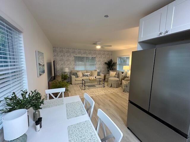 Welcome to your dream coastal retreat in North Palm Beach, Florida! This charming 2-bedroom, 2-bathroom bungalow has been meticulously renovated and is fully furnished, offering a perfect blend of modern elegance and comfort. As you step inside, you'll be greeted by an open-concept living space adorned with contemporary finishes and sun-drenched rooms that exude warmth and tranquility.The gourmet kitchen boasts sleek countertops and state-of-the-art appliances, ideal for culinary enthusiasts who...Welcome to your dream coastal retreat in North Palm Beach, Florida! This charming 2-bedroom, 2-bathroom bungalow has been meticulously renovated and is fully furnished, offering a perfect blend of modern elegance and comfort. As you step inside, you'll be greeted by an open-concept living space adorned with contemporary finishes and sun-drenched rooms that exude warmth and tranquility.The gourmet kitchen boasts sleek countertops and state-of-the-art appliances, ideal for culinary enthusiasts who love to entertain. Each bedroom provides a serene escape with plush furnishings and ample closet space with the primary suite featuring a King bed and the guest a twin trundle. The updated bathrooms feature spa-like touches that promise relaxation after a day enjoying the Florida sun. The bungalow has a private patio with a lovely table and chairs and a private grill for the perfect Florida evenings. There is also a shared patio for the three bungalows to use which features a shared laundry room with full sized washer/dryer and a second patio/common area with outdoor sofas and a hot tub. Situated in an enviable location, this turnkey property allows you to embrace the vibrant coastal lifestyle effortlessly. Just minutes away, enjoy morning strolls for fresh coffee at local gems like Jupiter Donuts or savor mouth-watering meals at PA BBQ before exploring the breathtaking Intracoastal waterways nearby.Whether you're seeking a seasonal residence or a short term vacation getaway, this bungalow offers unparalleled convenience with walkability to renowned restaurants and attractions. Don't miss out on this gem.